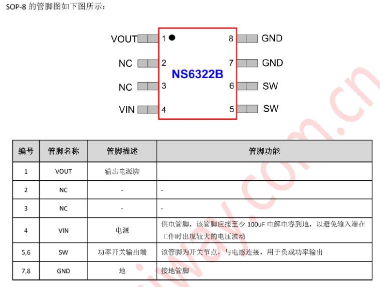 NS6322B采用SOP8的標(biāo)準(zhǔn)封裝。