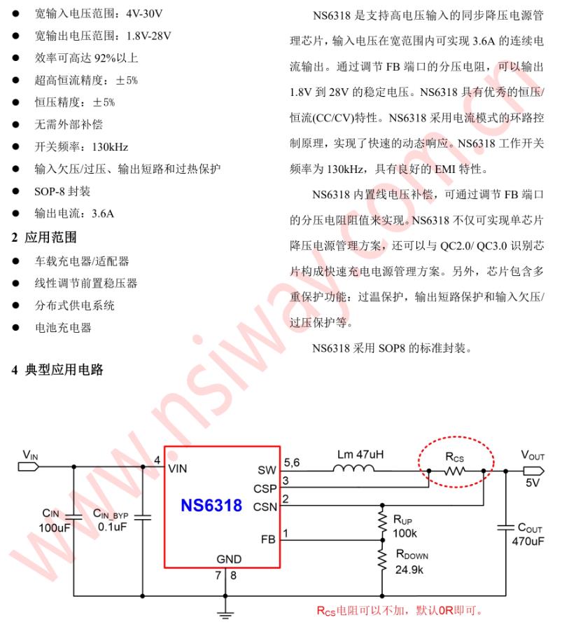 NS6318 4-30V輸入 3.6A輸出同步降壓型穩(wěn)壓器