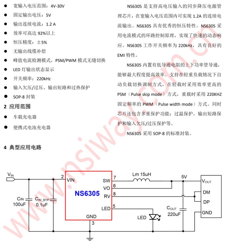 NS6305 固定5V/1.2A輸出同步降壓型穩(wěn)壓器