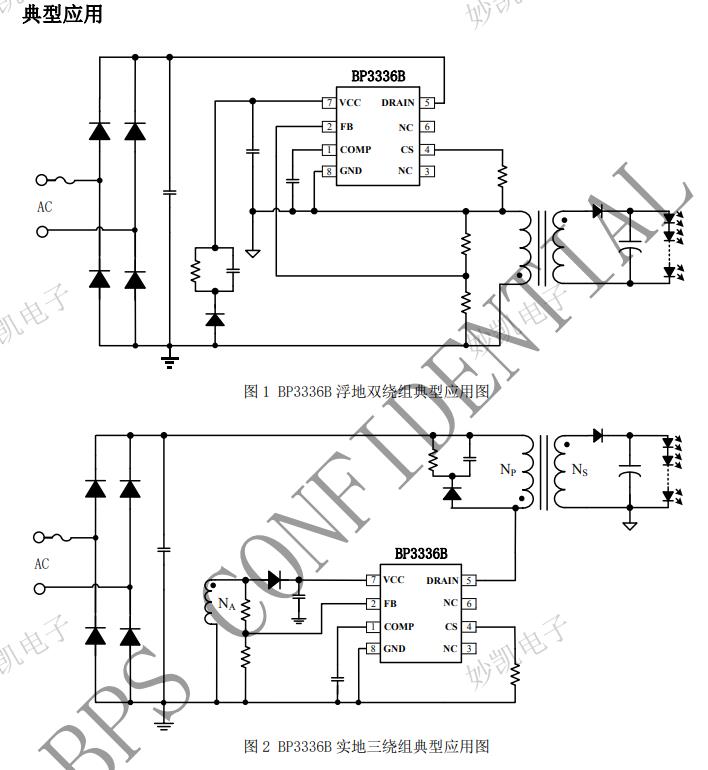 BP3336B 可以支持單繞組浮地 Buck-boost 或者兩 繞組/三繞組的隔離 Flyback 拓?fù)洹?nbsp; BP3336B 采用 SOP-8 封裝。
