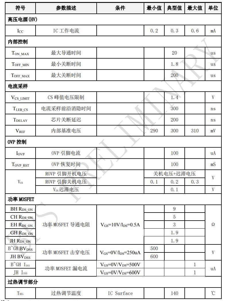 | BP2362JH | SOP7 | Y | 1.9Ω | 600V | External | Y | - | - | <270 |