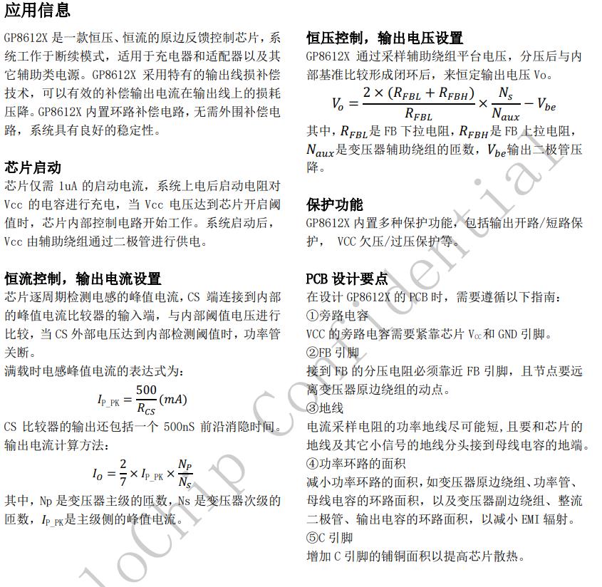GP8612X具有多重保護(hù)功能,包括開(kāi)路保護(hù),過(guò)壓保護(hù),短路保護(hù)等功能。