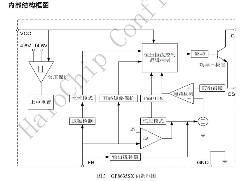 GP8635SX內(nèi)置環(huán)路補(bǔ)償電路,無需外圍補(bǔ)償電路,系統(tǒng)具有良好的穩(wěn)定性。GP8635SX可以實(shí)現(xiàn)良好的恒壓、恒流特性,滿足待機(jī)功耗小于75mW。