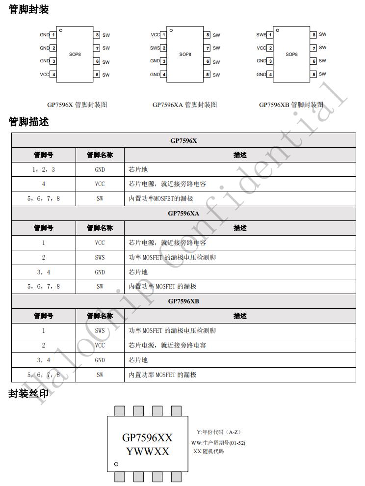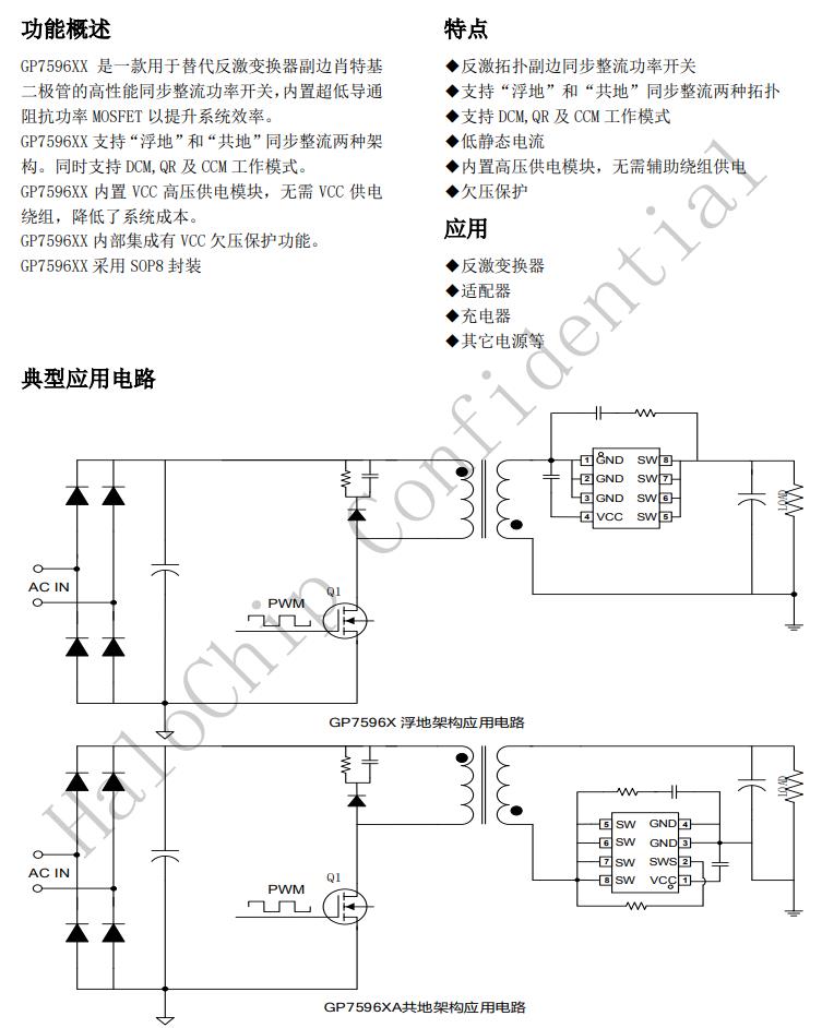 GP7596XX是一款用于替代反激變換器副邊肖特基二極管的高性能同步整流功率開關(guān),內(nèi)置超低導(dǎo)通阻抗功率MOSFET以提升系統(tǒng)效率。