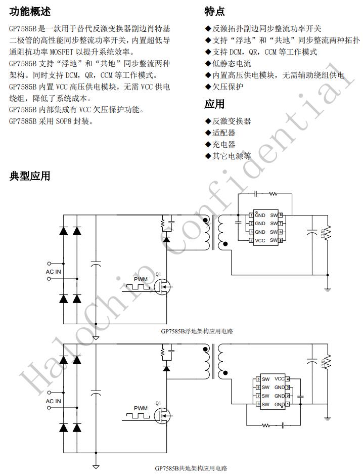 GP7585B支持“浮地”和“共地”同步整流兩種架構(gòu)。同時支持DCM,QR,CCM等工作模式。