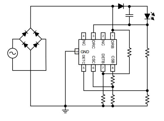 PM2036內(nèi)部集成了兩個固定恒流源,兩個恒流 源之間的關(guān)系可以靈活配置,既可以獨(dú)立使用, 又可以并聯(lián)使用。獨(dú)立使用時,PM2036可以實(shí)現(xiàn) 單顆IC同時控制兩路LED,滿足可控硅調(diào)光的照 明應(yīng)用;關(guān)聯(lián)使用時,PM2036有著異常靈活的應(yīng) 用方案,既可以兼顧高功率因數(shù),也可以配置成 功率因數(shù)大于0.9的光電一體化方案,可以使用傳 統(tǒng)可控硅調(diào)光器調(diào)光。